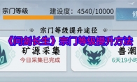问剑长生游戏中目前已知的可以提升宗门等级的手段有三个,挖矿,兽潮以及修葺,宗门等级的提升可以为宗门内成员直接带来修为或者战力相关的收益。下面是3DM小编给大家带来的《问剑长生》宗门等级提升方法,感兴趣的小伙伴们一起来看看吧。 《问剑长生》宗门等级提升方法(1)通过修葺获取的宗门建设点存在每日上限200点,(建议每天捐多一次到达上限)但是这是提升宗门等级最快捷的手段(2)挖矿每天5小时,相当于一天每人可以提供100点建设点(每天挖矿,并且尽可能选择高级矿脉)(3)兽潮一次参与者每人可以提供保底740点,(假设我对活动奖励没误解的话)宗门等级的提升可以为宗门内成员直接带来修为或者战力相关的收益所以挖矿,兽潮和修葺在这游戏中就极为重要!!!!宗门任务中可获得贡献和凝神木(该物品可放入宗门丹炉中炼制成凝神露)全宗投入的