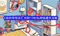 规则怪怪谈找到11处私房钱怎么过?规则怪怪谈是一款有趣的益智休闲游戏,大家可以在闲暇时间来闯关。下面给大家带来了《规则怪怪谈》找到11处私房钱通关攻略,一起看看具体如何过关吧! 《规则怪怪谈》找到11处私房钱通关攻略找到11处私房钱这一关明面上都没有私房钱,都是比较隐蔽的地方,私房钱具体位置如下: 以上就是3DM小编整理带来的《规则怪怪谈》找到11处私房钱通关攻略,更多相关攻略内容,请点击关注3DM手游网!
