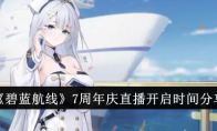 碧蓝航线7周年庆直播什么时候开启?相信现在有很多玩家都期待着7周年庆的到来吧,那么具体是什么时候呢?想知道的小伙伴可以来看看下面的碧蓝航线国服7周年庆直播时间分享,希望对大家会有帮助。《碧蓝航线》7周年庆直播开启时间分享碧蓝航线对于玩家来说期待已久的7周年庆方面的直播预告的消息,这次官方也正式有所透露和公开了,具体来说说这次的直播预告的内容还有相关的活动安排,同时官方也公开了一些有关这次直播周年庆方面的活动涉及到的剪影情报,来猜猜看今年谁能解锁联动换装皮肤。沐光而行,沿途风景自此绚烂;时空造梦,继续编织专属于我们的记忆;波光荡漾的旅途,佳七号即将启航——七周年活动内容、全新角色、联动换装等重磅情报将于直播中揭晓,欢迎各位指挥官预约登船,一同启航!'执笔寄情思'活动于直播预约同步开启,将回忆和心情寄语书于笔尖,写