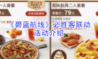 碧蓝航线必胜客联动活动是什么?很多小伙伴不知道碧蓝航线必胜客联动活动是什么。《碧蓝航线》是一款即时海战的二次元手游,以少女养成为主要玩法,游戏中有着良好的社交环境,游戏画风清新可爱,玩法丰富多彩,有着良好的海战体验。下面小编给大家带来《碧蓝航线》必胜客联动活动介绍,希望能帮助到小伙伴们哦。小编推荐阅读:《碧蓝航线》三周年活动攻略大全 《碧蓝航线》必胜客联动活动介绍一、活动简介 联动套餐售卖时间:5月21日~5月27日皮肤实装时间:5月21日后通过饿了么外卖、必胜客APP购买联动款比萨套餐,即可获得游戏道具兑换码,联动款换装、头像框将在5月21日后开放领取。饿了么:点击下载 宅急送:点击下载 二、联动套餐 三种套餐价格、内容以及可兑换赠品如下图所示: 具体兑换规则请见:https://game.bilibili