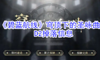 碧蓝航线穹顶下的圣咏曲D2掉落什么?很多小伙伴不知道碧蓝航线穹顶下的圣咏曲D2掉落什么。《碧蓝航线》是一款即时海战的二次元手游,以少女养成为主要玩法,游戏中有着良好的社交环境,游戏画风清新可爱,玩法丰富多彩,有着良好的海战体验。下面小编给大家带来《碧蓝航线》穹顶下的圣咏曲D2掉落信息,希望能帮助到小伙伴们哦。小编推荐阅读:穹顶下的圣咏曲活动地图掉落信息汇总《碧蓝航线》穹顶下的圣咏曲D2掉落信息驱逐:奥利克、富特、斯彭斯、彗星、新月、小天鹅轻巡:阿贾克斯、阿基里斯、利安得、柯尼斯堡、卡尔斯鲁厄、科隆重巡:伦敦、诺福克、萨福克、彭萨科拉、盐湖城战巡:反击航母:贝亚恩轻航:兰利、突击者、竞技神图纸:四联40mm博福斯对空机炮T3、四联40mm博福斯对空机炮T2、三联装152mm主炮T3、链式装弹机T3、SG雷达T2以