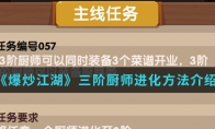 在爆炒江湖游戏中很玩家还不清楚,厨神大赛的具体玩法是什么。接下来就让小编给大家带来《爆炒江湖》厨神大赛玩法攻略,感兴趣的小伙伴们一起来看看吧,希望可以帮助到大家。 《爆炒江湖》厨神大赛玩法攻略【玩法攻略】 1、不要急着完成比赛,每个人只有一次机会。厨神大赛长达两天,这期间你的实力可能有所提升,可能有新的一些技巧出现,越晚做把握越大。2、调整心态,除了前3,奖励其实并没有多好,没必要为了这一丢丢的奖励心态爆炸。永远记住这只是放置游戏。3、比赛结束时间并不是到周天晚上12点,大概7点至8点就结束了。要提早一点点比赛,不要错过了。4、一边比赛,一边心中暗骂豆腐分数比较高,心诚则灵!!!/滑稽5、一般情况下,3阶优于2阶优于1阶,多做一道菜的差距实在太大了。在保证3个3阶厨师后,再看具体菜谱需求分配厨师。以上就是《爆炒