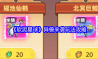 大地图惊现上古异兽,本次给大家带来了《软泥星球》异兽来袭玩法攻略!异兽来袭活动开启后,各修士可在大地图中消耗探索次数进行探索,每次消耗1探索次数且必定可发现1次事件。三分钟包教包会,看完轻松上榜~>>道士职业流派搭配 | 剑客职业流派搭配 | 刀侠职业流派搭配 《软泥星球》异兽来袭玩法攻略一、异兽来袭规则介绍 【开启规则】1.首次开启:开服第4天的00:00-22:002.二次开启:开服第6天的00:00-22:003.后续开启:开服第8天起的每周二、四的00:00-22:00【玩法规则】1.活动开启后,各修士可在大地图中消耗探索次数进行探索,每次消耗1探索次数且必定可发现1次事件;2.战斗事件可消耗挑战次数进行挑战;3.挑战可单人或组队进行,