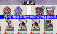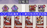 我们今天为大家带来了古今2风起蓬莱火元素灼烧流阵容攻略,该配队主要打出各种「灼烧牌」,对敌人施加「灼烧」。核心输出手段是「红尘灵狐」的「红莲印」,触发某敌人的所有「灼烧」,造成巨额伤害。通过「噬血大法」为己方施加「灼烧」,以此触发「赤焰诀」的减怒效果,可以1怒抽牌,同时触发「七星拳」的效果,补充伤害。>>风元素追击流阵容攻略 | 风元素回返流阵容攻略 >>火元素自残流阵容攻略 古今2风起蓬莱火元素灼烧流阵容攻略一、一图流配队 二、战斗演示思路解析打出各种「灼烧牌」,对敌人施加「灼烧」。核心输出手段是「红尘灵狐」的「红莲印」,触发某敌人的所有「灼烧」,造成巨额伤害。通过「噬血大法」为己方施加「灼烧」,以此触发「赤焰诀」的减怒效果,可以1怒抽牌,同时触发「七星拳」的效果