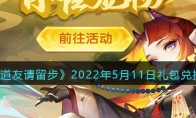 《道友请留步》游戏自上线以来发送了很多礼包码,很多小伙伴想知道2022年5月23日礼包兑换码是什么,在哪里可以兑换使用呢?一起来和3DM小编看看《道友请留步》2022年5月23日礼包兑换码及领取地址吧!>>>>>《道友请留步》礼包兑换码大全2022《道友请留步》2022年5月23日礼包兑换码兑换码:祈愿小锦鲤含元宝x300、中级经验宠物x5有效期至5月29日其他有效兑换码:小狐狸(有效期至...)五年了(有效期至...)五月十五(有效期至5.31)领礼包啦(有效期至5.23)可喜可贺(有效期至5.25)我爱小锦鲤(有效期至5.26)礼包码在哪兑换最新20221、登录游戏,通过游戏主界面左上角【活动】入口。2、点击活动界面顶部最右侧第一个活动为【礼包兑换】界面。3、在礼包兑换界面,输