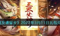《道友请留步》游戏自上线以来发送了很多礼包码,很多小伙伴想知道2022年3月26日礼包兑换码是什么,在哪里可以兑换使用呢?一起来和3DM小编看看《道友请留步》2022年3月26日礼包兑换码及领取地址吧!>>>>>《道友请留步》礼包兑换码大全2022 >>>>>《道友请留步》礼包兑换码大全2021 《道友请留步》2022年3月26日礼包兑换码兑换码:玩剑虎道场礼包内容:元宝x300、神炼石x30有效期限:2022.3.25-2022.4.1 道友请留步礼包码在哪兑换1、登录游戏,通过游戏主界面左上角【活动】入口。2、点击活动界面顶部最右侧第一个活动为【礼包兑换】界面。3、在礼包兑换界面,输入礼包码,点击【兑换】按钮。4、 完成以上操作,即可获得礼包奖励