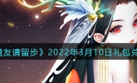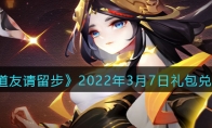 《道友请留步》游戏自上线以来发送了很多礼包码,很多小伙伴想知道2022年三八妇女节礼包兑换码是什么,在哪里可以兑换使用呢?一起来和3DM小编看看《道友请留步》2022年三八妇女节礼包兑换码及领取地址吧!>>>>>《道友请留步》礼包兑换码大全2022>>>>>《道友请留步》礼包兑换码大全2021《道友请留步》三八妇女节礼包兑换码2022小狐狸(有效期至...)五年了(有效期至...)是书阁呀(有效期至3.8)三月上(有效期至3.15)灵武和装备(有效期至3.9)小唐僧趣味问答(有效期至3.10)它来了它来了(有效期至3.11)紫虚灵武攻略到(有效期至3.12)道友请留步礼包码在哪兑换1、登录游戏,通过游戏主界面左上角【活动】入口。2、点击活动界面顶部最右