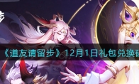 《道友请留步》游戏自上线以来发送了很多礼包码,很多小伙伴想知道12月2日礼包兑换码是什么,在哪里可以兑换使用呢?一起来和3DM小编看看《道友请留步》12月2日礼包兑换码及领取地址吧!>>>>>《道友请留步》礼包兑换码大全2021 《道友请留步》12月2日礼包兑换码兑换码:haoleng——(有效期至12.6) 兑换码只能领取一次,不能重复领取 道友请留步礼包码在哪兑换1、登录游戏,通过游戏主界面左上角【活动】入口。2、点击活动界面顶部最右侧第一个活动为【礼包兑换】界面。3、在礼包兑换界面,输入礼包码,点击【兑换】按钮。4、 完成以上操作,即可获得礼包奖励道具!以上就是3DM小编整理带来的《道友请留步》12月2日礼包兑换码及兑换地址的全部内容,更多精彩内容,请点击关注3DM手游网,