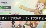 黑色四叶草魔法帝之道特莱吉亚怎么样?在黑色四叶草魔法帝之道这款游戏当中,大家如果遇到了特莱吉亚这个角色,但是不知道怎么用的话,本期的黑色四叶草魔法帝之道特莱吉亚怎么样介绍就可以让大家熟悉起来,这个角色在游戏当中的用法,因为这个角色目前很少玩家有用到,所以在她的整体能力上面还是有部分玩家不知道她走哪些流派的,那么以下的详细介绍可以让大家了解她技能的同时,找到专属的流派。《黑色四叶草魔法帝之道》特莱吉亚介绍目前游戏当中的特莱吉亚是一个达到SR品质的角色,所以就算是在新手时期用她的强度也是足够大家度过很多关卡的,前期用她的话主要是放在一些火系队伍里面,她的整体能力会比较好用,因为她的技能1效果就是一个火焰爆炸的效果,使用她的技能仪带来的爆炸效果当中有很强大的火焰特效,此时是对一名单体的敌人带来伤害效果,而且在造成伤害