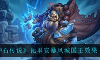 在炉石传说中有很多小伙伴都很想知道游戏中即将上线的中立传说卡牌瓦里安暴风城国王的效果怎么样,今天小编给大家带来了《炉石传说》瓦里安暴风城国王效果一览,感兴趣的小伙伴一起来看看吧,希望可以帮助到大家。《炉石传说》瓦里安暴风城国王效果一览一、卡牌介绍名称:瓦里安暴风城国王稀有度:中立传说卡牌费用:8费 战吼:抽一张突袭随从牌以获得突袭。依此法检定是否可获得嘲讽和圣盾。二、效果解读这个抽卡效果类似馆长,但是整个抽卡要求比较苛刻,特效缺一个就有点亏,整体强度感觉一般。以上就是小编整理的关于《炉石传说》瓦里安暴风城国王效果一览的全部内容,更多游戏攻略请持续关注3DM手游网!