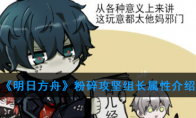 《明日方舟》中除了boss级别的敌人外,最具有威胁的就是那些精英怪,虽然属性比不上boss,但是在数量上的优势却也是让博士们措手不及,粉碎攻坚组长就是其中一位,那么它的属性如何,该如何应敌呢?一起来看看吧。《明日方舟》粉碎攻坚组长属性介绍一、敌人属性二、级别0以上就是小编整理的《明日方舟》粉碎攻坚组长属性介绍的全部内容,想知道更多相关资讯攻略的请关注3DM手游网。