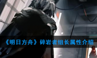 《明日方舟》中除了boss级别的敌人外,最具有威胁的就是那些精英怪,虽然属性比不上boss,但是在数量上的优势却也是让博士们措手不及,碎岩者组长就是其中一位,那么它的属性如何,该如何应敌呢?一起来看看吧。《明日方舟》碎岩者组长属性介绍一、敌人属性二、级别0以上就是小编整理的《明日方舟》碎岩者组长属性介绍的全部内容,想知道更多相关资讯攻略的请关注3DM手游网。
