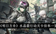 明日方舟水晶箭行动关卡倍率怎么样?明日方舟新出的水晶箭行动关卡可以刷取的角色培养材料是非常多的,种类齐全,不过这些关卡的材料掉落概率和倍率是不一样的。以下是小编为大家带来的明日方舟水晶箭行动关卡倍率的详细介绍,一起来看看吧!《明日方舟》水晶箭行动关卡倍率一览一、活动关卡掉率括号内数字为单件估算理智,数据来源企鹅物流数据统计。CR-8:全新装置(36.1)CR-7:炽合金(25.2)CR-6:聚酸酯组(21.6)CR1~CR5关卡掉落的白色/绿色材料掉率价值不高。二、关卡对比1.全新装置全新装置一直是缺口比较大的素材,最高掉率是覆巢之下的36.08,和本次的水晶箭行动差不多,推荐刷取。2.炽合金炽合金在活动画中人/孤梦/绿野幻梦和本次水晶箭行动都有掉落且都在25.2左右,相对另外两个材料来说更新一些,推荐刷取。3