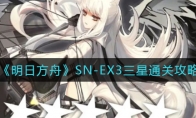 《明日方舟》游戏中SN-EX3关卡很多玩家不知道怎么打,那么今天小编就给大家介绍一下明日方舟SN-EX3三星通关攻略,有需要的小伙伴不要错过了。 《明日方舟》SN-EX3三星通关攻略常规 4人部署顺序:箱×2歌↑星→温↓桑↓传统调箱图推拉或者硬抗都可以前面的关卡难度都不高 以上就是《明日方舟》SN-EX3三星通关攻略,更多游戏攻略请持续关注3DM手游网!