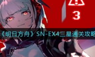 《明日方舟》游戏中SN-EX4关卡很多玩家不知道怎么打,那么今天小编就给大家介绍一下明日方舟SN-EX4三星通关攻略,有需要的小伙伴不要错过了。 《明日方舟》SN-EX4三星通关攻略6人SN-EX-4突袭(包括宝箱任务) 没有星熊的话可以多带个小火龙放在左下角高台干掉小怪能天使可以换成任意高台输出推王可以换成任意先锋开局部署顺序为能天使↓推王↓拉普兰德←星熊←蜜莓↓夜莺→然后挂机到结束 以上就是《明日方舟》SN-EX4三星通关攻略,更多游戏攻略请持续关注3DM手游网!