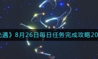 《光遇》游戏中8月26日每日任务有向一位朋友做个动作、在云野重温先祖的美好回忆、掀翻5只螃蟹、收集绿色光芒,那么今天小编就给大家介绍一下光遇8月26日每日任务完成攻略2022,有需要的小伙伴不要错过了。 《光遇》8月26日每日任务完成攻略2022任务一向一位朋友做个动作:面向好友随便做一个动作即可完成! 任务二在云野重温先祖的美好回忆:在云野三塔图一塔双人门内点燃先祖先祖进行回忆即可完成! 任务三掀翻五只螃蟹:长按人物大叫掀翻五只螃蟹即可完成! 任务四收集绿色光芒:进入云野右侧浮岛图等待绿光落下(整点落下)收集即可完成! 以上就是《光遇》8月26日每日任务完成攻略2022,更多游戏攻略请持续关注3DM手游网!