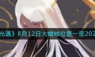 《光遇》游戏中8月12日大蜡烛位置已经更新,玩家们可以进入在云野、雨林、霞谷地图中寻找,那么今天小编就给大家介绍一下光遇8月12日大蜡烛位置一览2022,有需要的小伙伴不要错过了。 《光遇》8月12日大蜡烛位置一览20228.12大蜡烛在云野、雨林、霞谷地图 云野1.云野大厅左侧 2.云野左侧隐藏图船旁台阶下 3.云野右侧隐藏图浮岛中央 4.云野终点大殿桥上 雨林1.雨林大厅右侧 2.雨林第一个大门内右侧 3.雨林蘑菇图小亭子 4.雨林右侧隐藏图水池边 霞谷1.霞谷大厅右前方 2.霞谷溜冰场冰面 3.霞谷飞行赛道八根柱子前 4.霞谷终点右边台阶上 以上就是《光遇》8月12日大蜡烛位置一览2022,更多游戏攻略请持续关注3DM手游网!