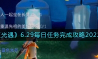光遇手游非常有趣,但是在游戏中经常都会有很多特殊的任务,其中6月29日每日任务怎么做有很多玩家不知道在哪,接下来小编就给大家带来了6月29日每日任务攻略,小伙伴们快来一起看看吧! 《光遇》6.29每日任务完成攻略20221、「和陌生人一起坐在长凳上」和小黑坐长凳2、「在霞谷重温先祖的美好回忆」霞谷霞光城,上方围栏内 3、「面对冥龙」被龙盯一下让它目光从蓝变红4、「收集蓝色光芒」霞谷溜冰场水底 以上就是《光遇》6.29每日任务完成攻略2022,更多游戏攻略请持续关注3DM手游网!