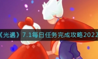 光遇手游非常有趣,但是在游戏中经常都会有很多特殊的任务,其中7月1日每日任务怎么做有很多玩家不知道在哪,接下来小编就给大家带来了7月1日每日任务攻略,小伙伴们快来一起看看吧! 《光遇》7.1每日任务完成攻略20221、和陌生人一起坐在长椅上。 2、在禁阁重温先祖的美好回忆:禁阁四层,雨林星图右边浮空平台上。需摆出祈祷动作直到中间石碑完全变白,然后重温出现的先祖的收集过程。 3、净化10株黑暗植物:烧10瓣花。 4、收集紫色光芒:禁阁一层双人门内。 以上就是《光遇》7.1每日任务完成攻略2022,更多游戏攻略请持续关注3DM手游网!