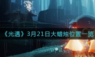 光遇3月21日的大蜡烛堆小伙伴们找到了吗?今日的大蜡烛堆位置又更新了,有很多小伙伴表示不知道大蜡烛堆在哪,今天大蜡烛堆在哪里呢?那下面小编就和大家分享一下3月21日大蜡烛堆的具体位置吧,感兴趣的小伙伴就一起看看吧!《光遇》3月21日大蜡烛位置一览第一堆第二堆第三堆第四堆以上就是《光遇》3月21日大蜡烛位置一览,更多游戏攻略请持续关注3DM手游网。
