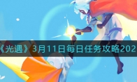 光遇手游非常有趣,但是在游戏中经常都会有很多特殊的任务,其中3月11日每日任务怎么做有很多玩家不知道在哪,接下来小编就给大家带来了3月11日每日任务攻略,小伙伴们快来一起看看吧! 《光遇》3月11日每日任务攻略20221、{和朋友使用击掌} 2、{收集紫色光芒} 3、{面对冥龙} 4、{霞光城上冥想} 以上就是《光遇》3月11日每日任务攻略2022,更多游戏攻略请持续关注3DM手游网!