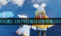 光遇手游非常有趣,但是在游戏中经常都会有很多特殊的任务,其中3月15日每日任务怎么做有很多玩家不知道在哪,接下来小编就给大家带来了3月15日每日任务攻略,小伙伴们快来一起看看吧!《光遇》3月15日每日任务攻略20221、「2人合力开启一道门」送出一颗心2、「收集青色光芒」进入云野后180°转身回晨岛,青光会从远处飞来3、「点燃20根蜡烛」4、「在雨林重温先祖的美好回忆」雨林水母图大花旁边的洞跳下去以上就是《光遇》3月15日每日任务攻略2022,更多游戏攻略请持续关注3DM手游网!