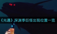 《光遇》游戏中深渊季是下一个季节,其中的深海巨型怪物很多玩家想知道都出现在什么地方,那么今天小编就给大家介绍一下光遇深渊季巨怪出现位置一览,有需要的小伙伴不要错过了。 《光遇》深渊季巨怪出现位置一览1.首先光之子们来到全新的深海地图中,往下图所示这座塔塔的地标建筑飞去。 2.我们在塔的左后方直接潜下去。 3.潜下去之后往下图所示的方向一直游。 4.接下来我们往左下方看,能够发现一只深海巨怪了。(没有出现的话就需要等一段时间) 5.巨怪是黑身红眼,和冥龙很相似。它平时并不会主动攻击玩家,应该会在后续出季节任务中露面 以上就是《光遇》深渊季巨怪出现位置一览,更多游戏攻略请持续关注3DM手游网!