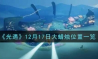 光遇12月17日的大蜡烛堆小伙伴们找到了吗?今日的大蜡烛堆位置又更新了,有很多小伙伴表示不知道大蜡烛堆在哪,今天大蜡烛堆在哪里呢?那下面小编就和大家分享一下12月17日大蜡烛堆的具体位置吧,感兴趣的小伙伴就一起看看吧!>>>小编推荐:光遇每日蜡烛位置一览表 12月17日大蜡烛位置地图:云野 地图:雨林 地图:霞谷 以上就是《光遇》12月17日大蜡烛位置分享,更多内容请关注3DM手游网。