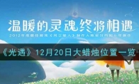 光遇12月20日的大蜡烛堆小伙伴们找到了吗?今日的大蜡烛堆位置又更新了,有很多小伙伴表示不知道大蜡烛堆在哪,今天大蜡烛堆在哪里呢?那下面小编就和大家分享一下12月20日大蜡烛堆的具体位置吧,感兴趣的小伙伴就一起看看吧!>>>小编推荐:光遇每日蜡烛位置一览表 12月20日大蜡烛位置地图:霞谷 以上就是《光遇》12月20日大蜡烛位置分享,更多内容请关注3DM手游网。