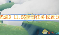 光遇11.25每日任务位置分享。在光遇这款游戏当中每天都是可以完成一些每日任务的,而每天的任务也都是会随机刷新的,光遇今天的每日任务刷新在了云野,大家知道今天11月25日的具体任务信息和做法流程吗?下面为大家带来光遇11.25每日任务怎么做的具体内容和方法,感兴趣的玩家们千万不要错过哦! 光遇11.25每日任务怎么做?每日任务11月25日 星期一云野 任务一:接受一位朋友的礼物 0/1完成方法:接受好友赠送的爱心/心火即可完成 任务二:在云野重温先祖的美好回忆 0/1完成方法:点燃先祖重温回忆位置:云野 仙乡 [三塔图]先祖:鼓掌钟匠 [动作] 任务三:拯救一只被黑暗藤蔓困住的遥鲲 0/1完成方法一:拿出心火蜡烛燃烧黑暗藤蔓拯救遥鲲即可完成位置:雨林 密林遗迹1.密林遗迹入口亭子右侧2.密林遗迹右侧矿洞前注:共