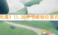 光遇11.25季节蜡烛位置在哪?在光遇这款游戏当中每天都可以找到很多的季节蜡烛,季节蜡烛是每个小光崽都必不可少的道具,但是想要收集却并不是那么容易的,因为季节蜡烛每天都会刷新,那么今天的季节蜡烛刷新在了什么地方呢?相信很多小伙伴都还没有找到,今天小编就带大家一起来看看详细的介绍吧。 光遇11.25季节蜡烛在哪里?11.25季节蜡烛位置地图:云野位置:第一堆:云野大厅 第二堆:云野一图 第三堆:云野一图 第四堆:云野一图 以上就是3DM小编整理带来的光遇11.25季节蜡烛位置在哪,更多相关游戏攻略,请关注3DM手游网!
