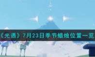 光遇7月23日的大蜡烛堆小伙伴们找到了吗?今日的大蜡烛堆位置又更新了,有很多小伙伴表示不知道大蜡烛堆在哪,今天大蜡烛堆在哪里呢?那下面小编就和大家分享一下7月23日大蜡烛堆的具体位置吧,感兴趣的小伙伴就一起看看吧!>>>小编推荐:光遇每日蜡烛位置一览表 7月23日大蜡烛位置全地图:除了雨林和霞谷以上就是《光遇》7月23日大蜡烛位置分享,更多内容请关注3DM手游网。