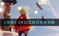 光遇手游非常有趣,但是在游戏中经常都会有很多特殊的任务,其中4月22日每日任务怎么做有很多玩家不知道在哪,接下来小编就给大家带来了4月22日每日任务攻略,小伙伴们快来一起看看吧! 4月22日每日任务攻略任务一:和陌生人一起坐在长凳上和不是好友的玩家一起坐在石凳上即可完成,除了晨岛和遇境以外其他地图大厅前都有石凳。 任务二:在禁阁追逐散落的星光位置:禁阁大厅/禁阁一层 任务三:点燃20根蜡烛拿出心火蜡烛燃烧10株黑暗植物即可完成推荐地图:云野 霞谷 禁阁 遇境 任务四:在禁阁重温先祖的美好回忆位置:禁阁二层 四人门内先祖:气功高人/移物学者(动作) 以上就是小编整理的关于《光遇》4月22日每日任务攻略的全部内容。更多游戏攻略请持续关注3DM手游网!