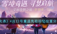 光遇4月22号先祖回忆小伙伴们知道在哪吗?这个游戏每天的任务都要小伙伴们自己找哦。小伙伴们找到重温先祖的位置了吗?今天的先祖是在禁阁,还不清楚4月22号先祖位置在哪里的小伙伴们,下面就一起来看看吧!>>>小编推荐:《光遇》每日重温先祖位置一览表 4月22日重温先祖回忆位置分享禁阁二楼四人门内 以上就是《光遇》4月22号重温先祖回忆位置分享,更多内容请关注3DM手游网。