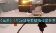 光遇手游非常有趣,但是在游戏中经常都会有很多特殊的任务,其中1月26日任务中季节蜡烛的位置有很多玩家不知道在哪,接下来小编就给大家带来了1月26日季节蜡烛位置介绍,快来一起看看吧!1月26日季节蜡烛位置介绍暮土第一图光之翼附近暮土第一图最右侧黑暗植物附近暮土第一图螃蟹池暮土第一图一龙图门口禁阁门口白斗先祖脚下禁阁门口白斗先祖身后禁阁一楼升降平台左后禁阁二楼四人门左侧以上就是小编整理的关于《光遇》1月26日季节蜡烛位置介绍的全部内容。更多游戏攻略请持续关注3DM手游网!