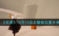 光遇手游非常有趣,但是在游戏中经常都会有很多特殊的任务,其中10月13日任务中季节蜡烛的位置有很多玩家不知道在哪,接下来小编就给大家带来了10月13日季节蜡烛位置介绍,快来一起看看吧!>>>>小编推荐阅读:《光遇》季节蜡烛位置大全 10月13日季节蜡烛位置介绍暮土第一图光之翼右侧 任务先祖旁 暮土第一图留言亭旁 一龙图入口 以上就是小编整理的关于《光遇》10月13日季节蜡烛位置介绍的全部内容。更多游戏攻略请持续关注3DM手游网!
