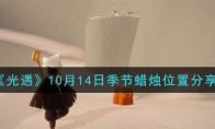 光遇手游非常有趣,但是在游戏中经常都会有很多特殊的任务,其中10月14日任务中季节蜡烛的位置有很多玩家不知道在哪,接下来小编就给大家带来了10月14日季节蜡烛位置介绍,快来一起看看吧!>>>>小编推荐阅读:《光遇》季节蜡烛位置大全 10月14日季节蜡烛位置介绍禁阁入口光之翼旁 禁阁一楼四人门旁 禁阁一楼升降平台旁 禁阁二楼四人门旁 以上就是小编整理的关于《光遇》10月14日季节蜡烛位置介绍的全部内容。更多游戏攻略请持续关注3DM手游网!