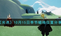 光遇手游非常有趣,但是在游戏中经常都会有很多特殊的任务,其中10月15日任务中季节蜡烛的位置有很多玩家不知道在哪,接下来小编就给大家带来了10月15日季节蜡烛位置介绍,快来一起看看吧!>>>>小编推荐阅读:《光遇》季节蜡烛位置大全 10月15日季节蜡烛位置介绍云野右侧隐藏图门口 云野左侧隐藏图门口 云野第一图先祖头顶 云野第一图先祖身后 以上就是小编整理的关于《光遇》10月15日季节蜡烛位置介绍的全部内容。更多游戏攻略请持续关注3DM手游网!
