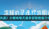 《光遇》游戏中大蜡烛每天可以获得几个?很多玩家不知道游戏中每天可以获得几个大蜡烛, 而且一个大蜡烛等于几根蜡烛?那么接下来小编为大家带来《光遇》大蜡烛每天最多获取数量介绍,一起来看看吧。 《光遇》大蜡烛每天最多获取数量介绍 每天最多可以获得几根大蜡烛: 1、首先玩家在游戏中每天最多可以获得4个大蜡烛。2、而且游戏中每根大蜡烛的位置也不固定,需要玩家自己寻找。3、有些大蜡烛的位置隐藏的比较深,需要玩家仔细寻找才能找到。大蜡烛相当于几根蜡烛: 1、大蜡烛在游戏中相当于30点烛光,游戏中一个蜡烛需要100点烛光,也就是说相当于三分之一的蜡烛。2、如果玩家一天找到4个大蜡烛,相当于获得一个蜡烛。3、时间长累计下来也是一笔不小的收入,而且蜡烛在游戏中的作用就不用小编多说了吧。以上就是小编整理的关于《光遇》大蜡烛每天最多获