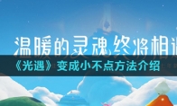《光遇》游戏中怎么变的比矮人更矮?游戏中很多玩家经常可以看见变成非常矮小的角色,而且在游戏中这些变小的角色甚至比矮人还要小,很多小伙伴不知道怎么弄的,那么接下来小编为大家带来《光遇》变成小不点方法介绍,一起来看看吧。 《光遇》变成小不点方法介绍 1、首先游戏中比矮人还小的玩家是使用了缩小药水。2、这种药水使用后就会变得非常矮小,比矮人还要矮小。3、如果玩家在游戏中佩戴矮人面具后,在使用缩小药水,玩家的身体就会变得非常矮小。4、这个时候玩家在搭配上无翼,就是一个乖宝宝。5、当然小编要提醒大家,这个缩小药水的持续时间只有十分钟。6、而且游戏中缩小药水的获取方法也比较困难,所以游戏中的缩小药水性价比不怎么高。以上就是小编整理的关于《光遇》变成小不点方法介绍的全部内容,更多游戏攻略请持续关注3DM手游网!