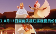 《光遇》游戏中8月13日旅行复刻先祖位置在哪?相信很多小伙伴都有所耳闻即将上线一位全新的复刻先祖,这位复刻先祖将会为我们带来什么物品?当然小伙伴们最为关心的还是这位复刻先祖的位置,那么接下来小编为大家带来《光遇》8月13日旅行复刻先祖位置及兑换详情介绍,一起来看看吧。《光遇》8月13日旅行复刻先祖位置及兑换详情介绍先祖存在时间:8月13日 12:00 - 8月17日 12:00先祖解锁位置:这位先祖的解锁位置还是比较好找的,位于霞谷的溜冰场,滑行赛道入口的旁边有一个洞口和和一个门,门后面就是红狐狸旅行先祖的所在地,开门进去就可以找到她,然后需要在溜冰场找回这位先祖的记忆。先祖兑换物品:(有可能国服会有调整,请以实际为准)我们可以在这位先祖处兑换到红狐狸面具,铃铛和蹦跳动作。红狐狸面具的兑换价格是54个普通蜡烛,