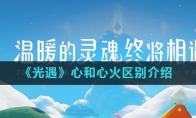 《光遇》游戏中心和心火有什么区别?其实小伙伴们只要走到心和心火的用处,即可知道两者之间的区别,心火是可以兑换心的,也就是游戏中的爱心,很多小伙伴区别不了心火和心的区别,那么接下来小编为大家带来《光遇》心和心火区别介绍,一起来看看吧。 《光遇》心和心火区别介绍 心和心火作用介绍: 1、首先我们要了解心和心火的作用,才能更好的区别两者之间的不同。2、心也就是游戏中的爱心,玩家可以使用爱心来兑换自己想要的物品。3、而心火在游戏中需要攒积一定的数量才能兑换成一颗爱心,目前游戏中需要100个心火才能兑换成一个爱心。4、也就是说心和心火的区别就是,心火其实就是爱心的碎片,积攒到一定的数量才能兑换爱心。总结 1、虽然游戏中心火兑换爱心的数量要求比较高,3DM小编教大家一个积攒心火的小技巧。2、在游戏中添加好友,好友越多玩家获