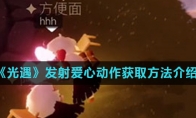 《光遇》游戏中发射爱心动作怎么获得?游戏中小伙伴经常可以看见其他玩家使用发射爱心动作,这个动作做出后类似于飞吻非常的好看,小伙伴们想不想也想获得这款飞吻动作呢?那么接下来小编为大家带来《光遇》发射爱心动作获取方法介绍,一起来看看吧。 《光遇》发射爱心动作获取方法介绍 1、首先这个动作是属于季节先祖的,玩家需要在音韵季节里找到先祖兑换获得。2、但是游戏中的音韵季节已经结束,玩家只能等待复刻这款动作才能获得了。 飞吻先祖位置: 1、飞吻动作先祖位于雨季的最后一个地图。2、这个先祖在桥下,目前在游戏中是无法找到的。3、玩家需要等待复刻才有可能出现。 总结 3DM小编提醒一下大家,一级的飞吻动作是没有发射爱心特效的,玩家需要升级这个动作才能拥有特效。以上就是小编整理的关于《光遇》发射爱心动作获取方法介绍的全部内容,更多
