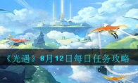 Sky光遇8月12日的四个每日任务分别是和向一位玩家鞠躬、在雨林追逐是散落的星光、掀翻5只螃蟹、在雨林重温先祖的美好回忆,不知道光遇8月12日每日任务怎么做的小伙伴,下面一起看看吧。 8月12日每日任务攻略 任务一:向一位玩家鞠躬鞠躬是霞谷动作,要面对玩家 任务二:在雨林追逐散落的星光星光在雨林飞下来的图 任务三:掀翻5只螃蟹雨林第三个图有捉迷藏动作的先祖的洞里有螃蟹 任务四:在雨林重温先祖的美好回忆先祖是雨林第一个图的角落里的 以上就是《光遇》8月12日每日任务攻略,更多光遇内容请关注3DM手游网。