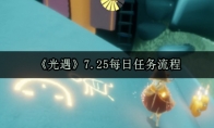 光遇玩家需要完成每天的任务,很多玩家对每天的任务不是很清楚,那么7月24号的任务要怎么完成呢?下面小编给大家来了7月24号的每日任务流程,一起来看看吧 光遇7月24每日任务攻略 任务一:向一位朋友做一个动作 1、首先来到遇境在星盘中中选择一个在线的好友传送到他的身边。2、打开列表动作,随意向好友做个动作就可以。 任务二:在霞谷追逐散落的星光 1、玩家首先要到达霞谷地图,星光在滑冰场左边的桥底下; 2、这里的星光很低,轻轻的跳起来就可以,或者等星光过来时直接从桥上扑下来碰星光就可以。 任务三:点燃20根蜡烛 随便找一个地图,看见有红蜡烛点满20根就可以了,这个任务是最简单的。任务四:重温霞谷先祖回忆 1、玩家首先来到霞谷地图,叉腰先祖在溜冰场右边的悬崖上;2、到达小坡上,这里的光球可以直接撞到自己的脸上,不用自