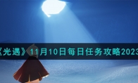 光遇是一款十分治愈的手游,其中光遇每天都会刷新四个日常任务,玩家完成日常任务即可获得蜡烛奖励,下面小编就给大家带来了光遇11月10日每日任务攻略,希望对感兴趣的玩家有所帮助,大家一起看一看吧。 光遇11月10日每日任务怎么做一、今日任务 「接受一位朋友的礼物」收一颗心或心火「在荧光小菇恢复能量」完全没有能量后靠近荧光蘑菇「拯救一只遥鲲」烧掉困住遥鲲的花「在密林遗迹冥想」在雨林水母图中间四连亭左边的小亭子下石碑前光圈处打坐并留言二、任务攻略 今日任务攻略如下: 以上就是3DM小编整理带来的《光遇》11月10日每日任务攻略2023,更多相关游戏攻略,请关注3DM手游网!