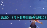 光遇是一款十分治愈的手游,其中光遇每天都会刷新四个日常任务,玩家完成日常任务即可获得蜡烛奖励,下面小编就给大家带来了光遇11月14日每日任务攻略,希望对感兴趣的玩家有所帮助,有需要的小伙伴快来看看吧。 光遇11月14日每日任务怎么做一、今日任务 「二人合力开门」开启一道双人门「在云野重温先祖的美好回忆」云野三塔图,左边塔下方双人门内「净化10株黑暗植物」烧10瓣花「在云顶浮石冥想」在云野右侧隐藏图左边残楼前实心建筑旁的石碑前光圈处打坐并留言二、任务攻略 今日任务攻略如下: 以上就是3DM小编整理带来的《光遇》11月14日每日任务攻略2023,更多相关游戏攻略,请关注3DM手游网!