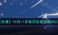 光遇是一款十分治愈的手游,其中光遇每天都会刷新四个日常任务,玩家完成日常任务即可获得蜡烛奖励,下面小编就给大家带来了光遇10月11日每日任务攻略,希望对感兴趣的玩家有所帮助,大家一起看一看吧。 光遇10月11日每日任务攻略1、烧10株花即可。 2、在雨林的神殿内冥想。 3、邀请一位朋友/找可互动的先祖击掌就可以了。 4、先祖的位置就在雨林的水母图上。 以上就是3DM小编整理带来的《光遇》10月11日每日任务攻略2023,更多相关游戏攻略,请关注3DM手游网!