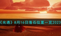 光遇是一款十分治愈的手游,其中光遇8月16日的落石已经降临,许多小伙伴都还没有找到,下面小编就给大家带来了光遇8月16日落石的位置介绍,希望对感兴趣的玩家有所帮助,有需要的小伙伴不要错过哦。 光遇8月16日落石位置『落石点』 今日落石点:(黑石)暮土终点图【不可】完成破晓季节任务、奖励烛火降落时间:9:08-10:00、15:08-16:00、21:08-22:00 以上就是3DM小编整理带来的《光遇》8月16日落石位置一览2023攻略,更多相关游戏攻略,请关注3DM手游网!
