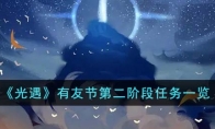 光遇有友节第二阶段任务有什么?《光遇》有友节第二波活动现已正式开启了,目前在游戏中玩家会有很多的活动玩法可以体验,可能有玩家还不清楚这次的第二波活动都有什么,下面小编就给大家整理了具体的活动一览,一起来看看吧! 《光遇》有友节第二阶段任务一览一、活动时间:7月29日-8月9日二、活动详情:1、完成“收藏1首来自他人的歌曲”任务,可以获得两个限时斗篷。2、完成“和好友一起听”任务能领到两个魔法。3、完成“陌生人一起听并点赞一次歌曲”就能领到两颗爱心。 以上就是3DM小编整理带来的光遇有友节第二阶段任务一览,更多相关游戏攻略,请关注3DM手游网!